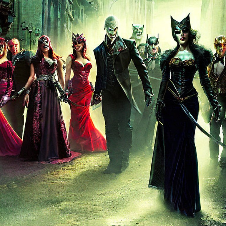 A coterie chegou junta ao evento, como era de esperar. Catarina fez questão de alugar carros luxuosos e contratou motoristas com nomes idôneos e bocas silenciosas, uma precaução importante nas noites atuais. Já havia convivas no grande salão, mas quando entraram, ao som de uma música sombria e dançante, a iluminação, sons e poses fizeram com que parecessem andar em câmera lenta.